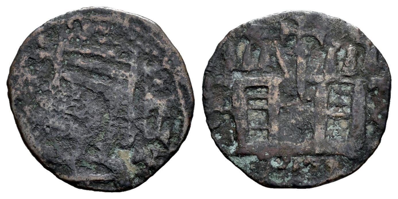 Reino de Castilla y León. Alfonso VIII (1158-1214). Dinero. (Bautista-Tipo 312). Ve. 1,08 g. Estrellas sobre el castillo. Falsa de época. BC-/BC. Est...25,00.