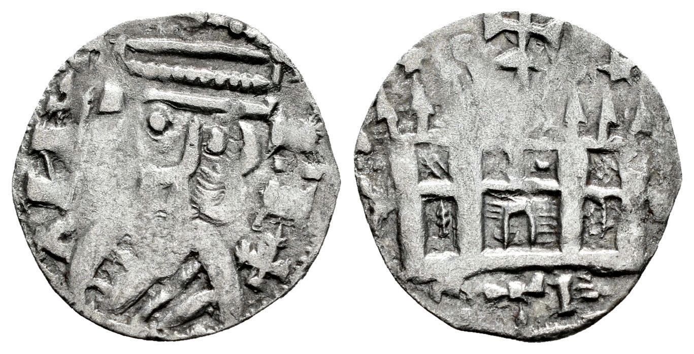 Reino de Castilla y León. Alfonso VIII (1158-1214). Dinero. (Bautista-312). Ve. 0,70 g. Estrellas sobre el castillo. MBC-. Est...50,00.
