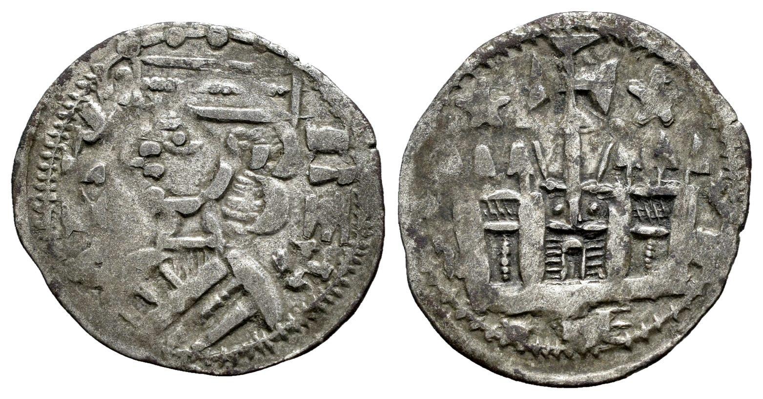 Reino de Castilla y León. Alfonso VIII (1158-1214). Dinero. (Bautista-312). Ve. 0,88 g. Estrellas sobre el castillo. MBC. Est...50,00.