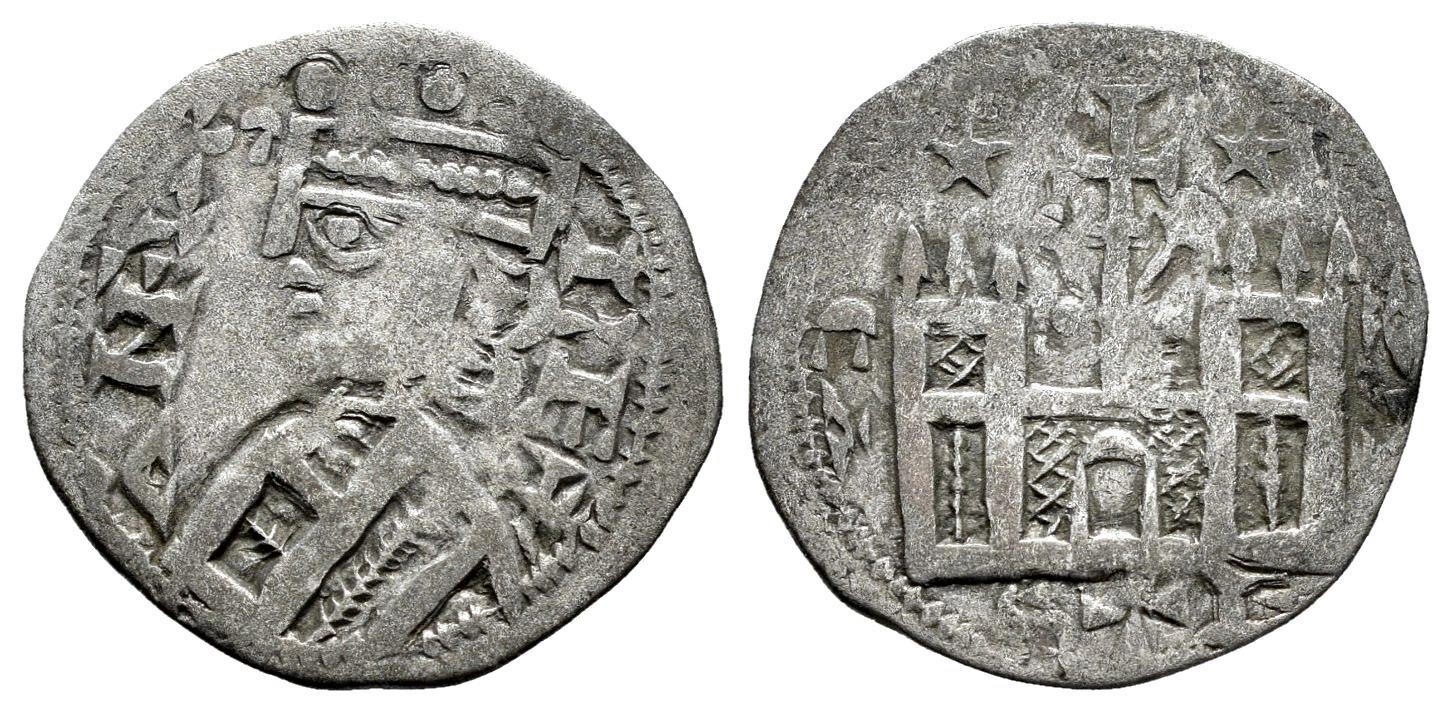Reino de Castilla y León. Alfonso VIII (1158-1214). Dinero. (Bautista-312). Ve. 0,93 g. Estrellas sobre el castillo. MBC. Est...50,00.