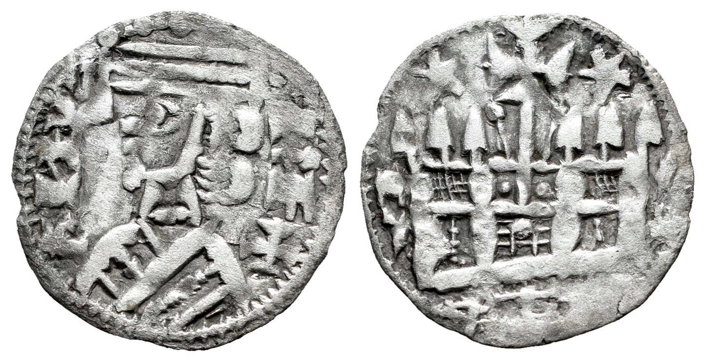Reino de Castilla y León. Alfonso VIII (1158-1214). Dinero. (Bautista-312). Ve. 0,67 g. Estrellas sobre el castillo. MBC+/MBC. Est...60,00.