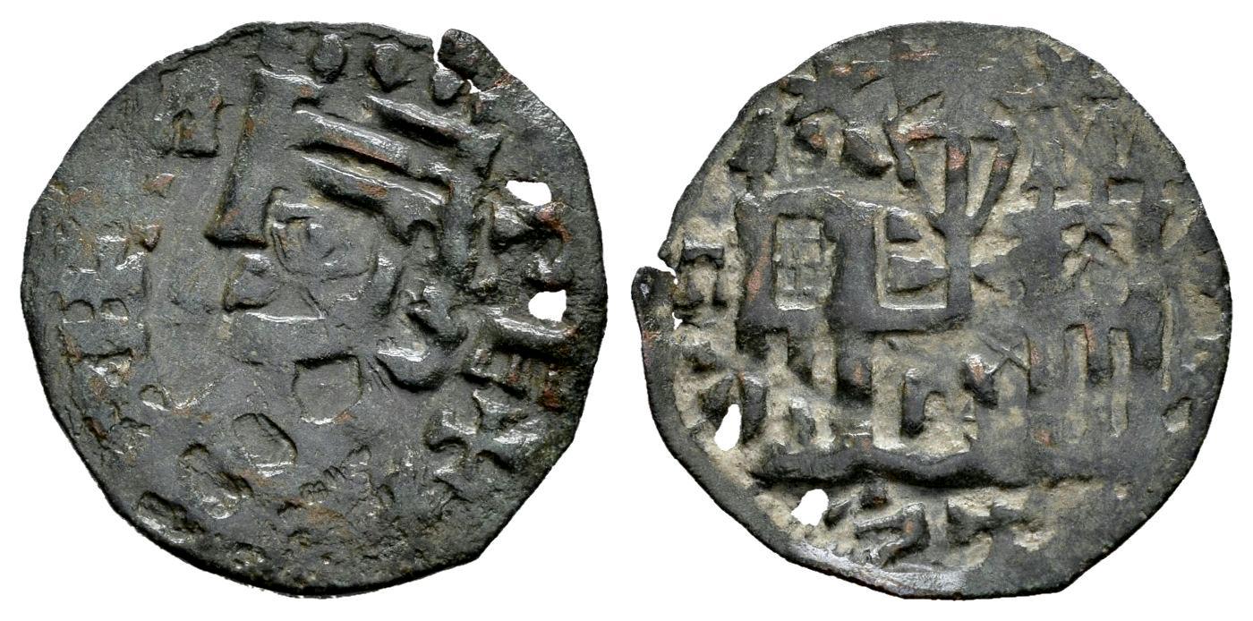 Reino de Castilla y León. Alfonso VIII (1158-1214). Dinero. (Bautista-Tipo 312). Ve. 0,73 g. Estrellas sobre el castillo. Falsa de época. MBC-. Est...50,00.