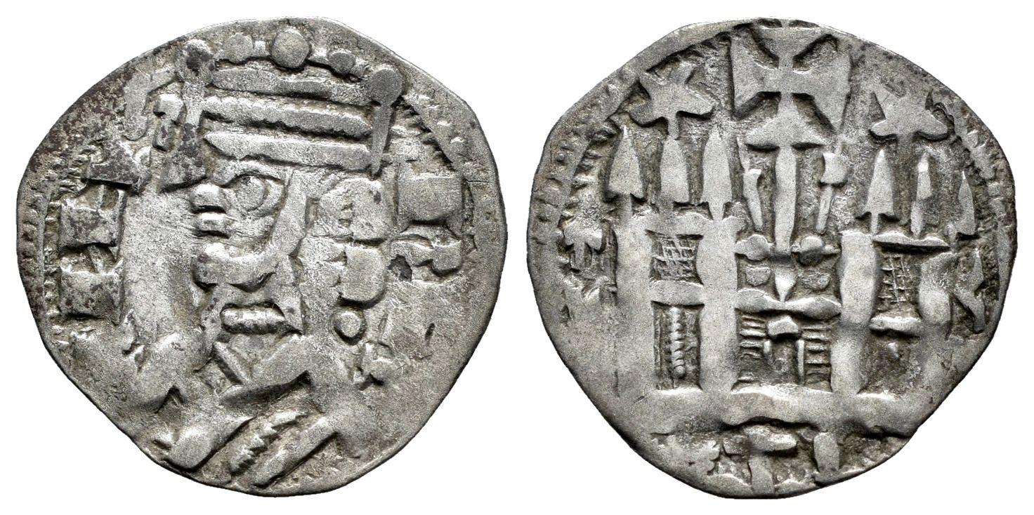 Reino de Castilla y León. Alfonso VIII (1158-1214). Dinero. (Bautista-312). Ve. 1,04 g. Estrellas sobre el castillo. MBC+. Est...60,00.