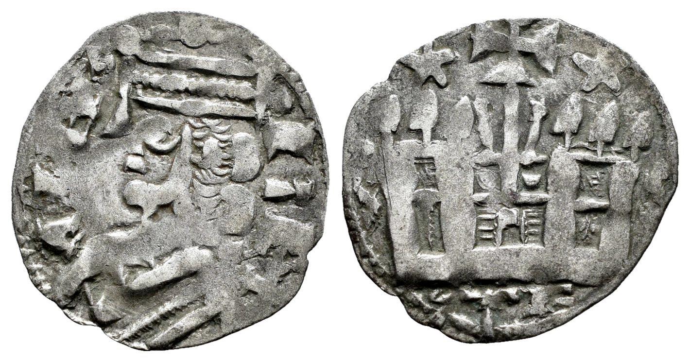 Reino de Castilla y León. Alfonso VIII (1158-1214). Dinero. (Bautista-312 var.). Ve. 0,89 g. Estrellas sobre el castillo. Punto detrás de la corona. MBC-/MBC. Est...60,00.