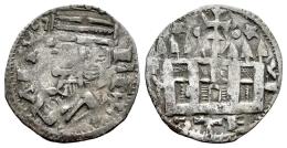 Reino de Castilla y León. Alfonso VIII (1158-1214). Dinero. (Bautista-312 var.). Ve. 0,89 g. Estrellas sobre el castillo. La L de CASTELA está invertida. Rara. MBC-/MBC. Est...70,00.