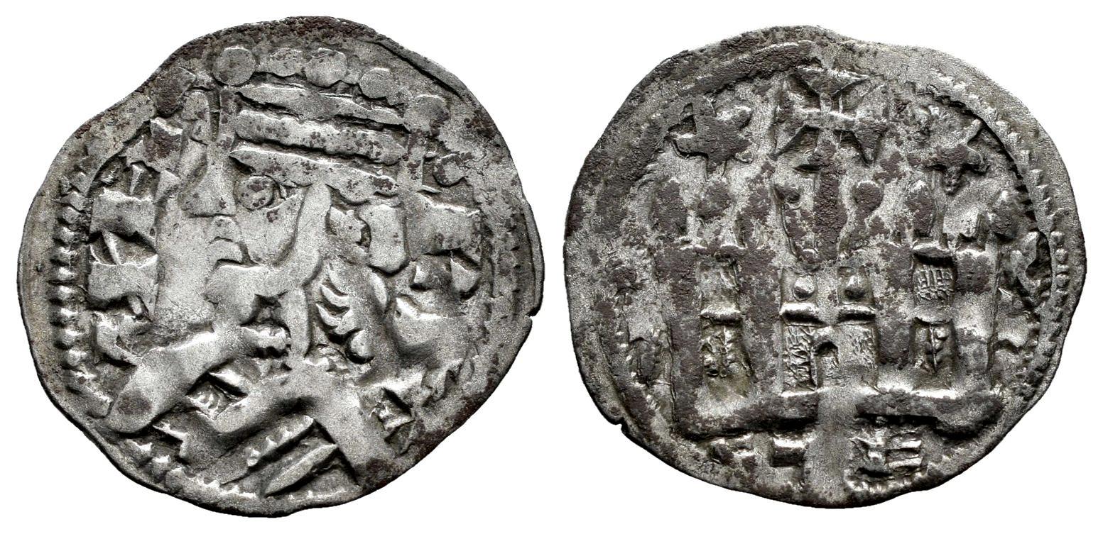 Reino de Castilla y León. Alfonso VIII (1158-1214). Dinero. (Bautista-312.1). Ve. 0,91 g. Estrellas sobre el castillo. Punto detrás del busto. Escasa. MBC/MBC-. Est...60,00.