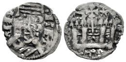 Reino de Castilla y León. Alfonso VIII (1158-1214). Dinero. (Bautista-312.1 var.). Ve. 0,61 g. Estrellas sobre el castillo. Punto detrás del busto y de la corona. Escasa. MBC. Est...60,00.