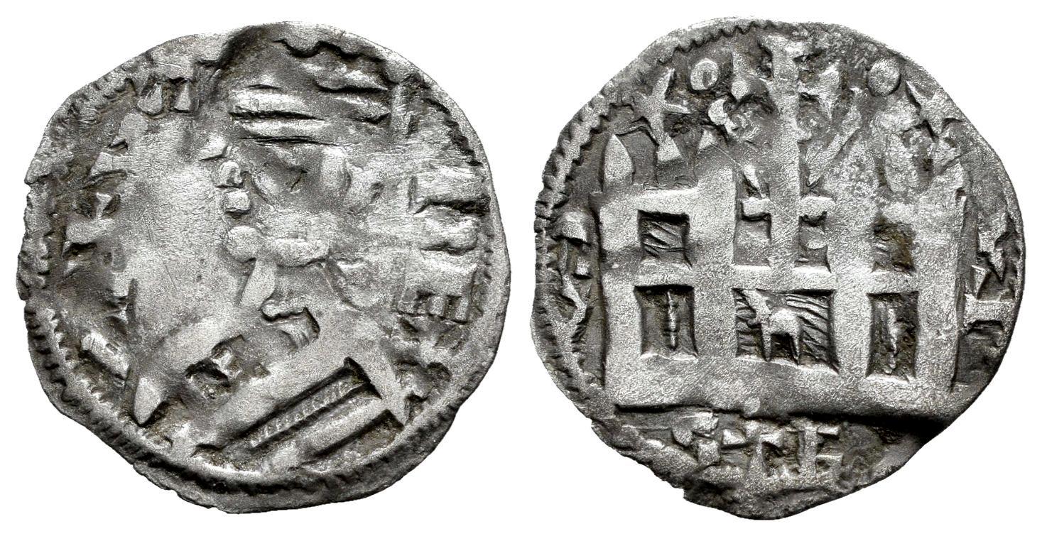 Reino de Castilla y León. Alfonso VIII (1158-1214). Dinero. (Bautista-312.2, como puntos). Ve. 0,83 g. Estrellas sobre el castillo. Roeles a cada lado de las estrellas. Escasa. MBC-/MBC. Est...70,00.