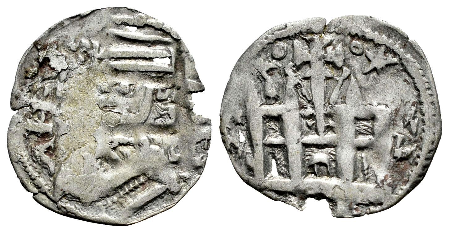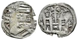 Reino de Castilla y León. Alfonso VIII (1158-1214). Dinero. (Bautista-312.2, como puntos). Ve. 0,63 g. Estrellas sobre el castillo. Roeles a cada lado de las estrellas. Escasa. MBC-/MBC. Est...50,00.