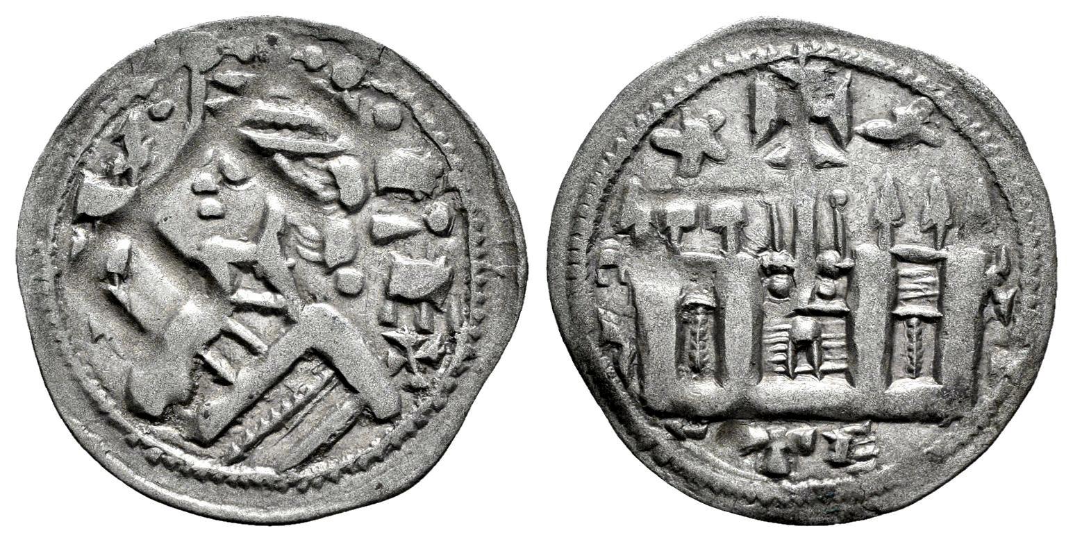 Reino de Castilla y León. Alfonso VIII (1158-1214). Dinero. (Bautista-312.1 var.). Ve. 0,74 g. Estrellas sobre el castillo. Punto detrás de la corona y del busto. Escasa. MBC+. Est...80,00.