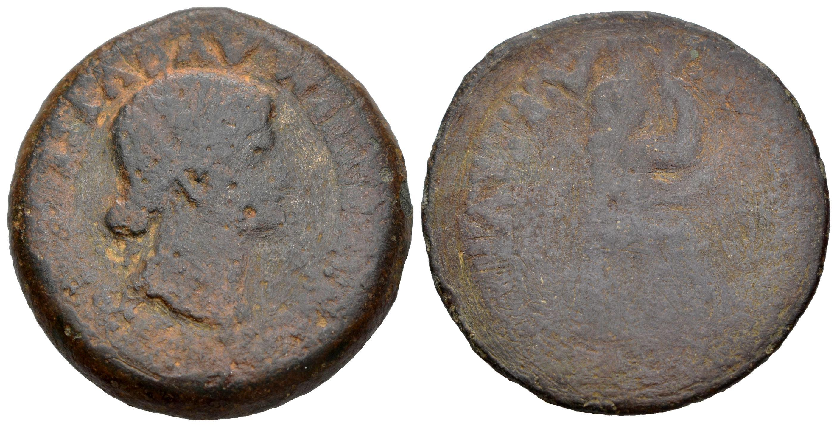 Emerita Augusta. Época de Tiberio. Dupondio. 14-36 d.C. Mérida (Badajoz). (Abh-1026). (Acip-3405). Anv.: Cabeza de Livia a derecha, alrededor PERM. AVGVSTI. SALVS. AVGVSTA. Rev.: Livia sentada a derecha, como Ceres, alrededor AVGVSTA. IVLIA. C.A.E. Ae. 21,98 g. BC+/BC-. Est...90,00.