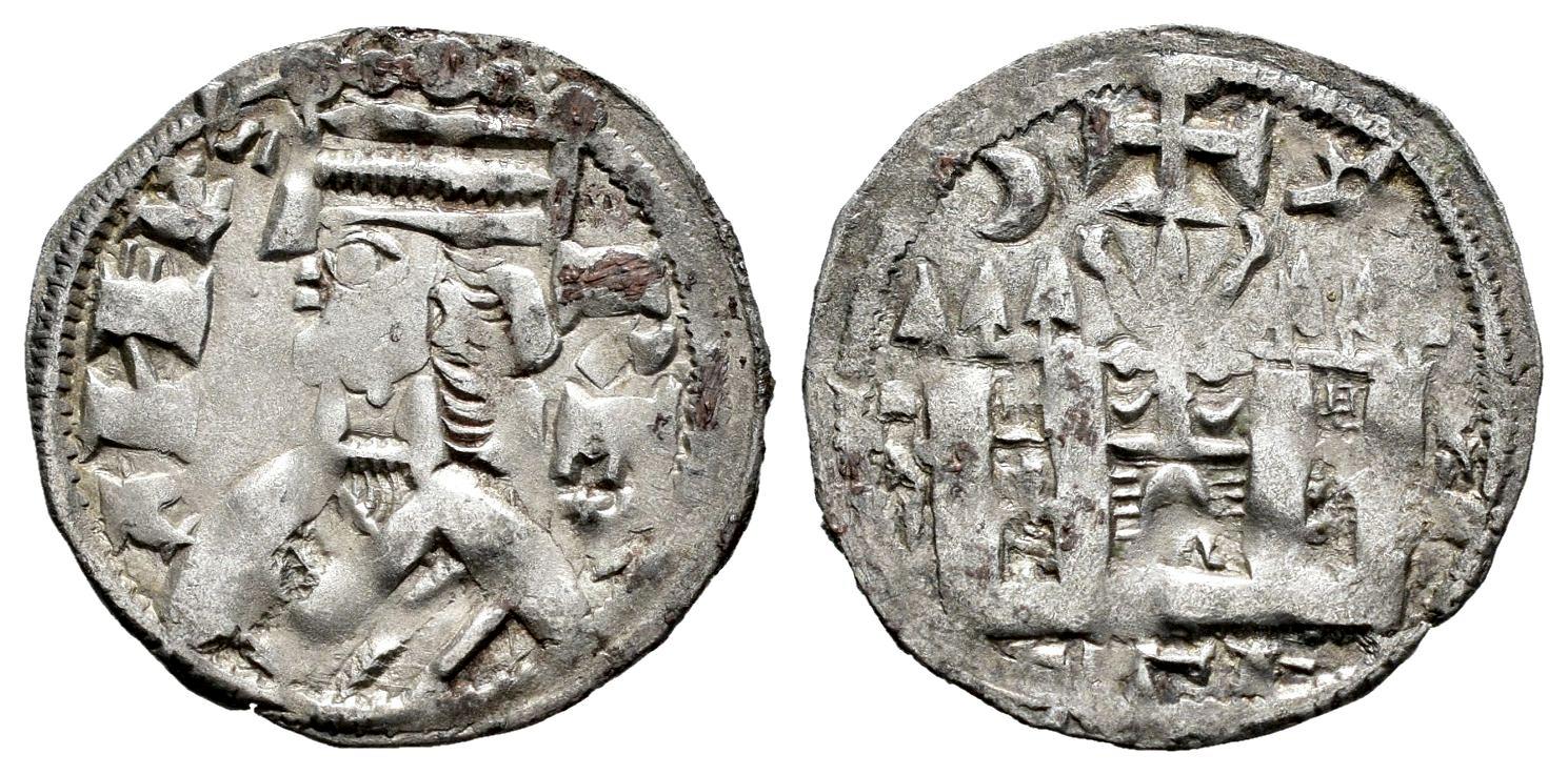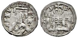 Reino de Castilla y León. Alfonso VIII (1158-1214). Dinero. (Bautista-322). Ve. 0,95 g. Creciente y estrella sobre el castillo. MBC+/MBC. Est...60,00.