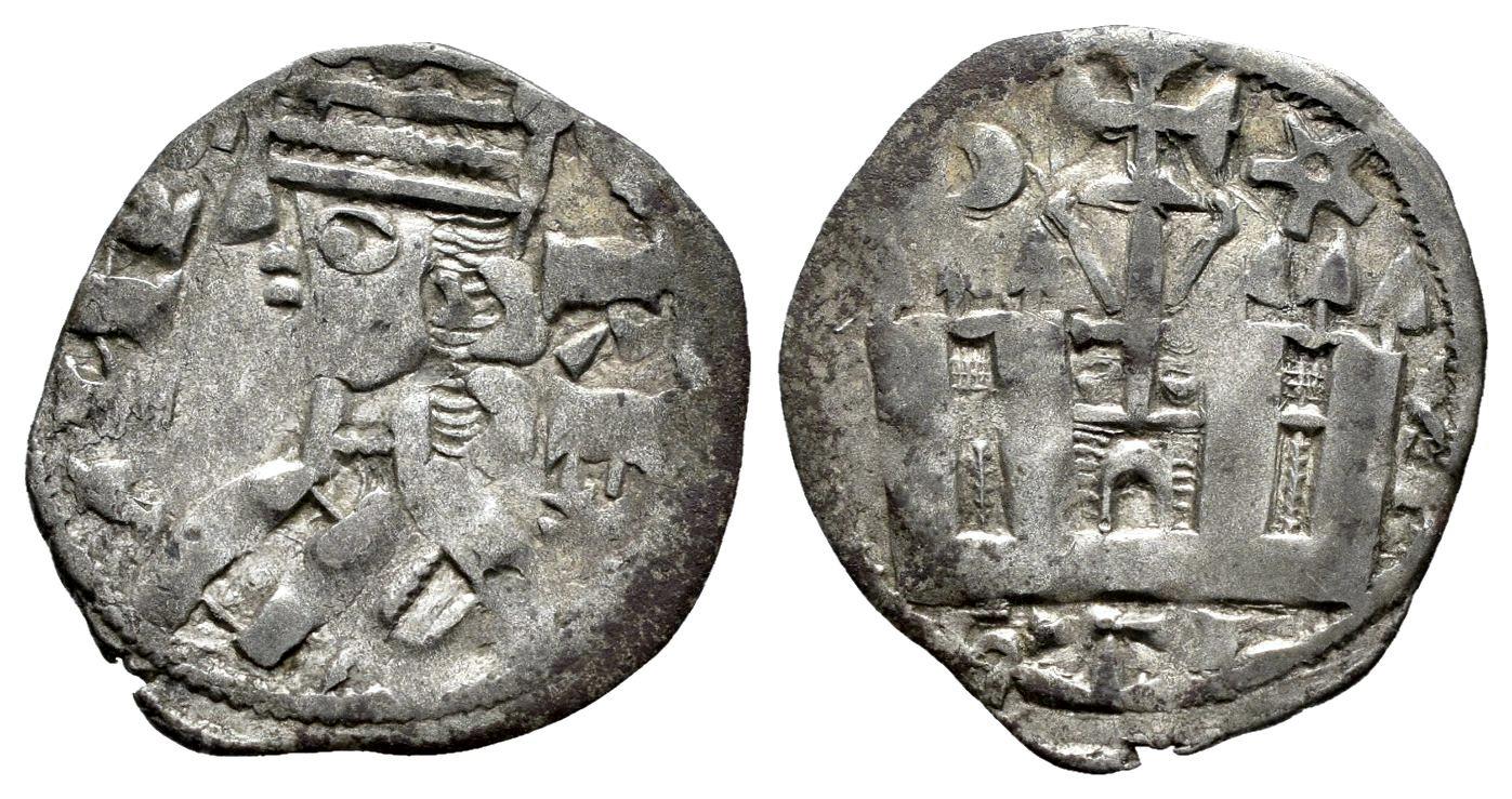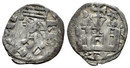 Reino de Castilla y León. Alfonso VIII (1158-1214). Dinero. (Bautista-322). Ve. 0,85 g. Creciente y estrella sobre el castillo. MBC-/MBC. Est...50,00.