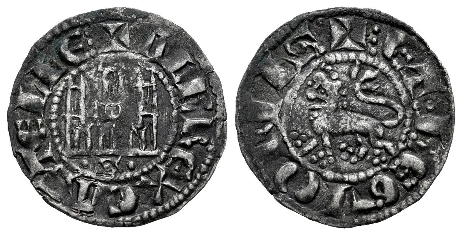 Reino de Castilla y León. Alfonso X (1252-1284). Pepión. Sevilla. (Bautista-348.1). Anv.: + ALF REX CASTELLE. Rev.: +︙ET︙LEGIONIS︙. Ve. 0,92 g. S entre puntos bajo el castillo. Pátina. MBC+. Est...60,00.