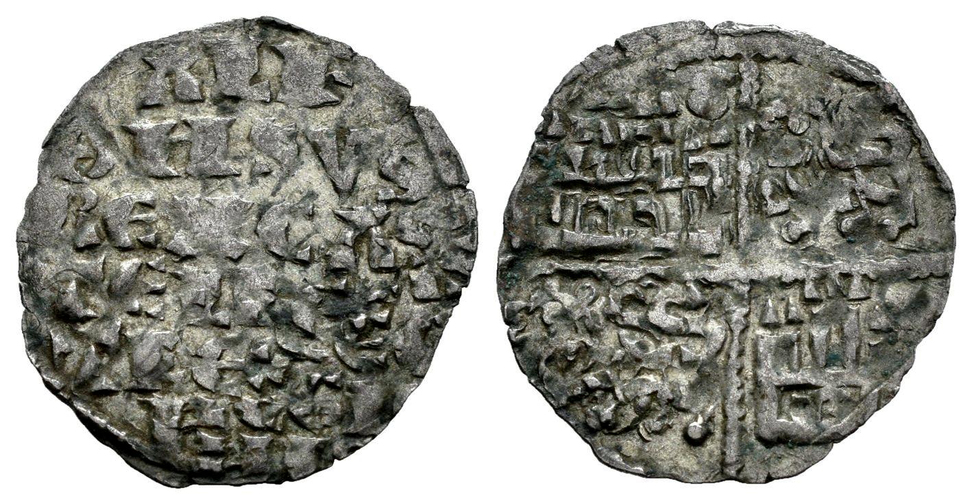 Reino de Castilla y León. Alfonso X (1252-1284). Dinero de seis líneas. Coruña. (Bautista-361). Ve. 0,46 g. Venera en el 1º cuadrante. Vellón rico. MBC. Est...50,00.