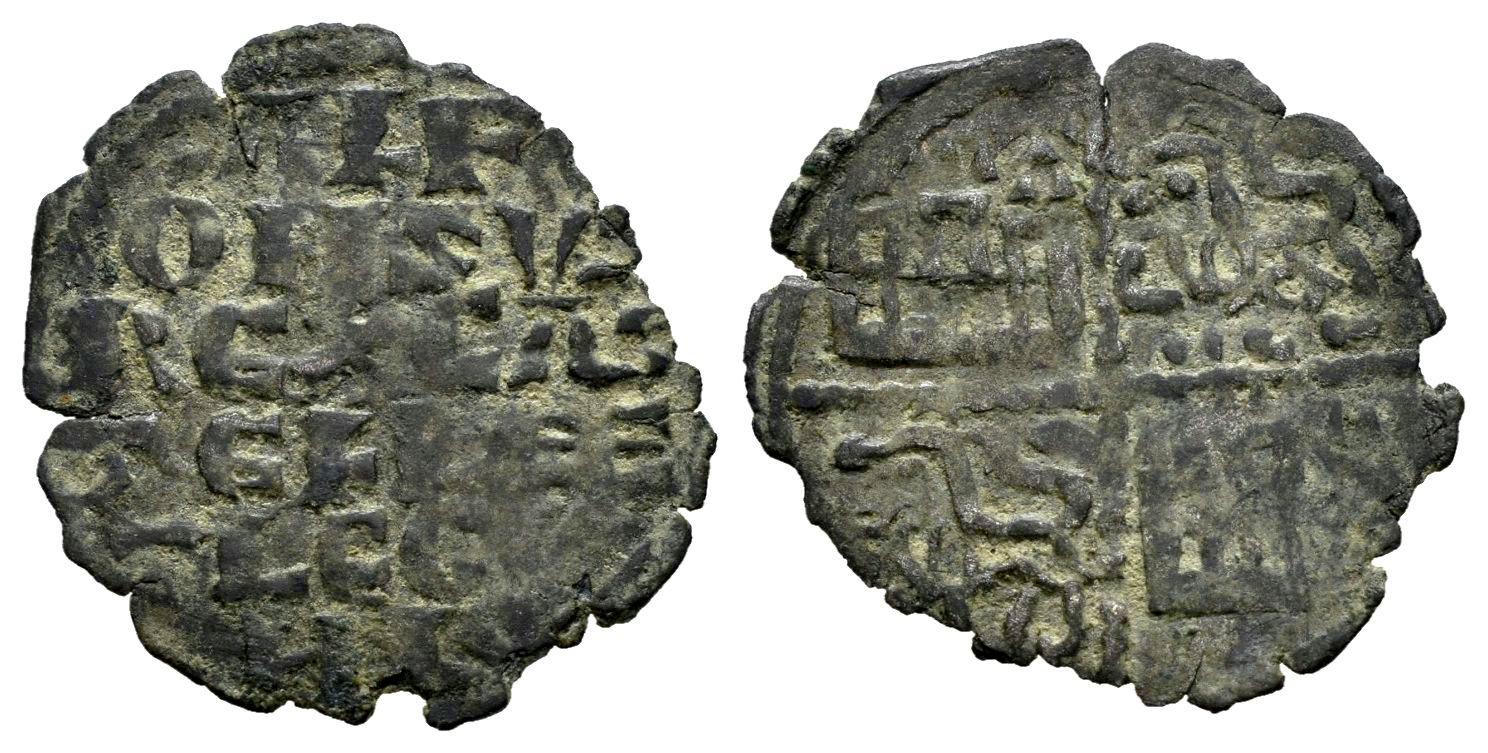 Reino de Castilla y León. Alfonso X (1252-1284). Dinero de seis líneas. (Bautista-362). Ve. 0,60 g. Cruz en el 1º cuartel. MBC-/MBC. Est...40,00.