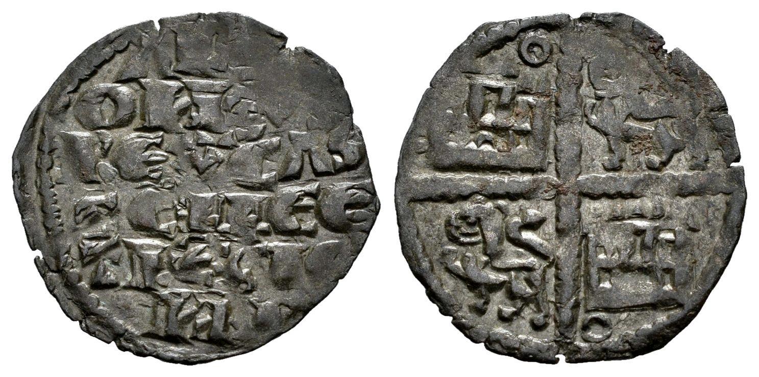 Reino de Castilla y León. Alfonso X (1252-1284). Dinero de seis líneas. (Bautista-363). Ve. 0,80 g. Roel en 1 y 4º cuartel. MBC/MBC+. Est...50,00.