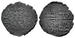 Reino de Castilla y León. Alfonso X (1252-1284). Dinero de seis líneas. (Bautista-363.1). Ve. 0,92 g. Roel en el 4º cuadrante. Escasa. MBC-. Est...50,00.