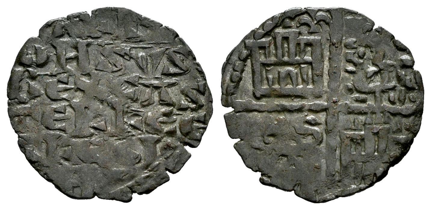 Reino de Castilla y León. Alfonso X (1252-1284). Dinero de seis líneas. (Bautista-364.1). Ve. 0,77 g. Flor de lis con base en el 1º cuadrante. Escasa. MBC-. Est...40,00.
