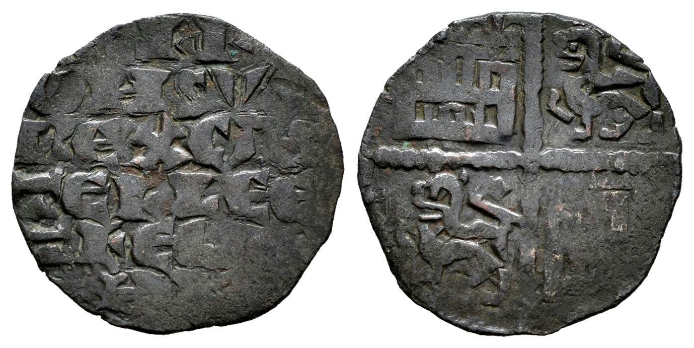 Reino de Castilla y León. Alfonso X (1252-1284). Dinero de seis líneas. (Bautista-364.1). Ve. 0,88 g. Flor de lis con base en el 1º cuadrante. Escasa. MBC-. Est...40,00.