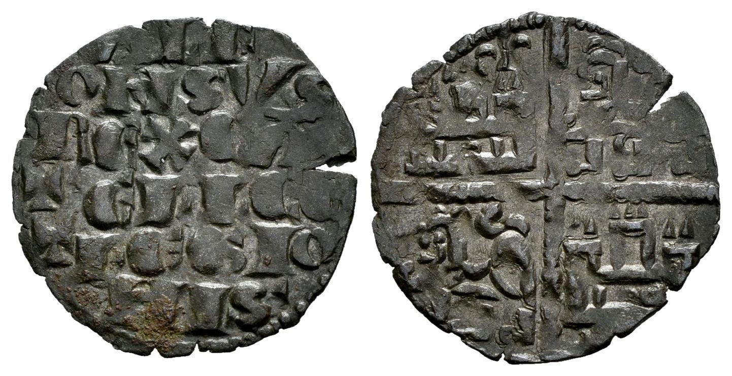 Reino de Castilla y León. Alfonso X (1252-1284). Dinero de seis líneas. (Bautista-364.1). Ve. 0,64 g. Flor de lis con base en el 1º cuadrante. Escasa. MBC+. Est...60,00.