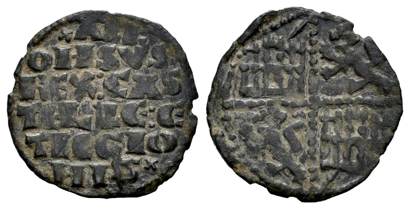 Reino de Castilla y León. Alfonso X (1252-1284). Dinero de seis líneas. (Bautista-367). Ve. 0,90 g. Espada en el 1º y 4º cuartel. MBC+. Est...50,00.