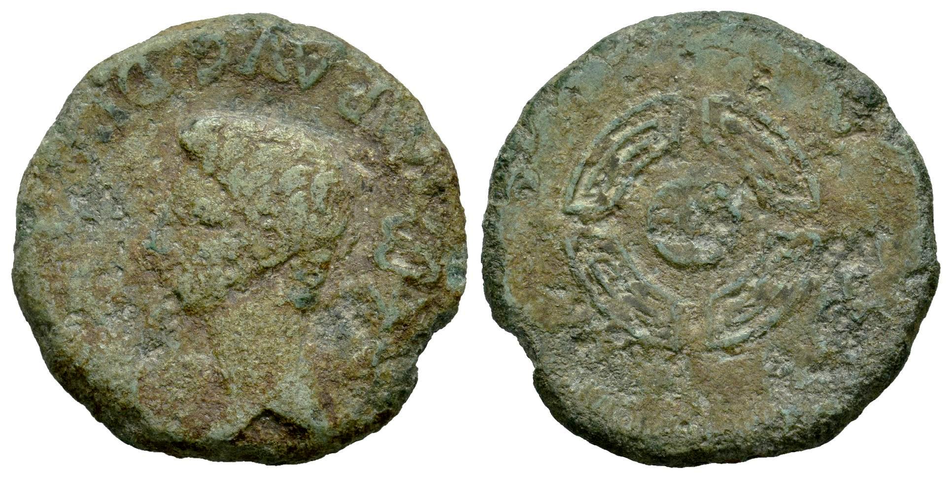 Luco Augusti. Época de Augusto. As. 27 a.C.-14 d.C. Lugo. (Abh-1706). Anv.: Cabeza desnuda de Augusto a izquierda, menor módulo, detrás caduceo, delante palma, alrededor IMP. AVG. DIVI. F. Rev.: Rodela de frente sin reborde. Ae. 7,23 g. BC-/BC. Est...90,00.