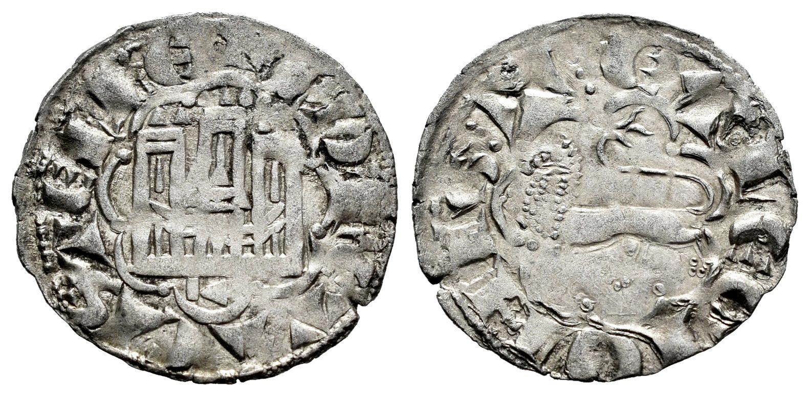 Reino de Castilla y León. Alfonso X (1252-1284). Novén. León. (Bautista-398). Anv.: + MONETA CASTELLE. Rev.: +︙ET︙LEGIONIS︙ . Ve. 0,79 g. L bajo el castillo. BC+/MBC-. Est...30,00.