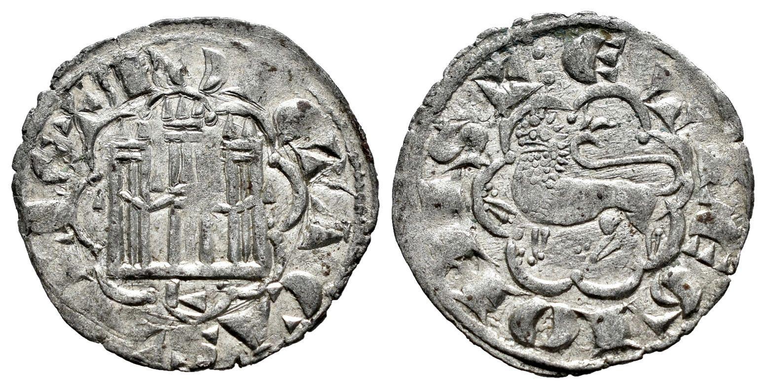 Reino de Castilla y León. Alfonso X (1252-1284). Novén. León. (Bautista-398). Anv.: + MONETA CASTELLE. Rev.: +︙ET LEGIONIS︙. Ve. 0,81 g. L bajo el castillo. La leyenda del anverso comienza a las 10h. Escasa. MBC+. Est...70,00.