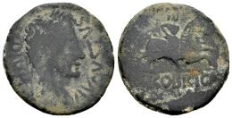 Segobriga. Época de Augusto. As. 27 a.C-14 d.C. Saelices (Cuenca). (Abh-2185). (Acip-3242). Anv.: Cabeza laureada de Augusto a derecha, alrededor AVGVSTVS. DIVI. F. Rev.: Jinete con lanza a derecha, debajo leyenda latina SEGOBRIGA. Ae. 8,95 g. BC+. Est...35,00.