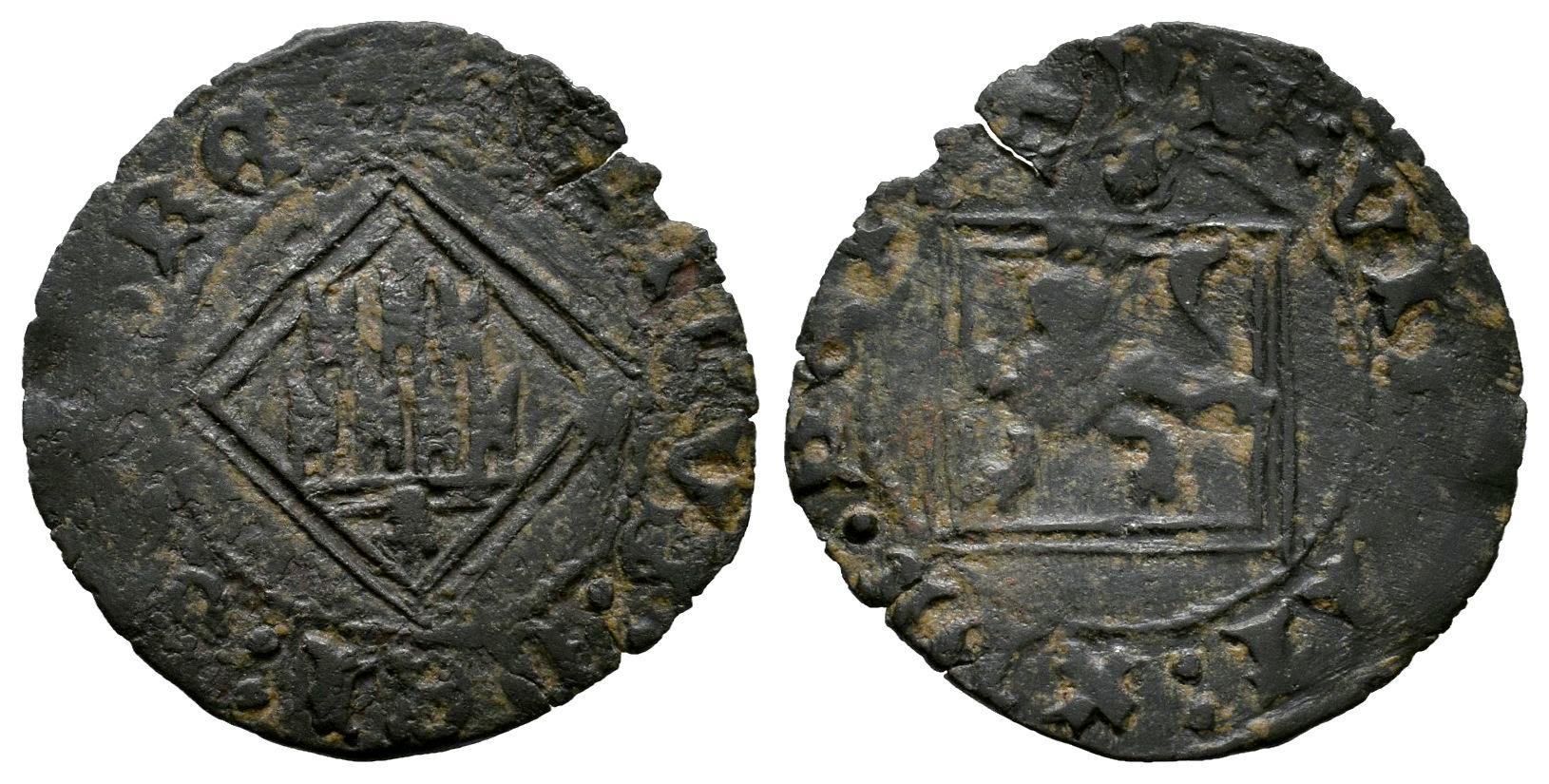 Reino de Castilla y León. Enrique IV (1454-1474). Blanca del rombo. Coruña. (Bautista-1080.1). (Abm-830.1). Ve. 0,90 g. Venera bajo el castillo y encima del león. MBC-. Est...25,00.