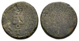 Reino de Castilla y León. Ponderal para Castellano. (1504-1533). (Braña-6.2.2). Anv.: T superada de roel bajo castillo. Ae. 4,40 g. 14mm. Raro. BC. Est...60,00.