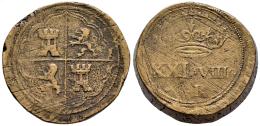 Felipe IV (1621-1665). Ponderal para 8 reales. (Mateu y Llopis-37). Anv.: Castillo y leones cuartelados. Rev.: XXIdVIIIg / *8*R* bajo corona. Ae. 26,81 g. 28mm. Rayas de ajuste. MBC. Est...60,00.