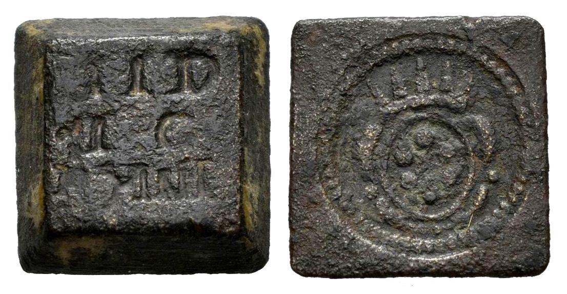 Ponderal para ducado. Europa probablemente siglo XV o XVI. Leyenda: II D en 1ª línea, II C en 2ª línea y II X IIII en 3ª línea. 12x12 mm. 3,17g. Ae. MBC-/20. Est...60,00.