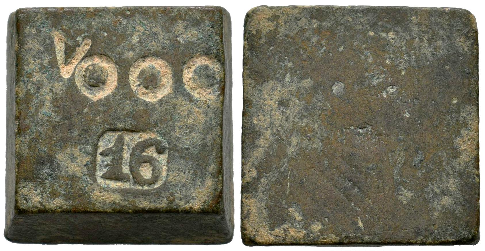 Ponderal para 8 escudos. (Braña-No cita). Anv.: En la parte superior VOOO y en la inferior en cartela 16. Ae. 26,84 g. 20mm X 20mm. MBC+. Est...40,00.