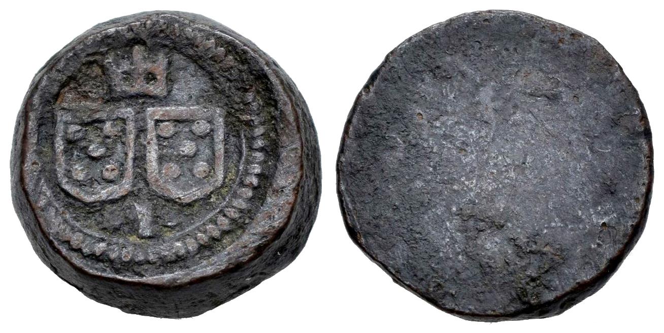 Ponderal para 2 cruzados portugueses según Ordenamiento de 1488. 15 mm. 5,94g. Ae. 2 escudos con las quinas de Portugal. MBC. Est...50,00.