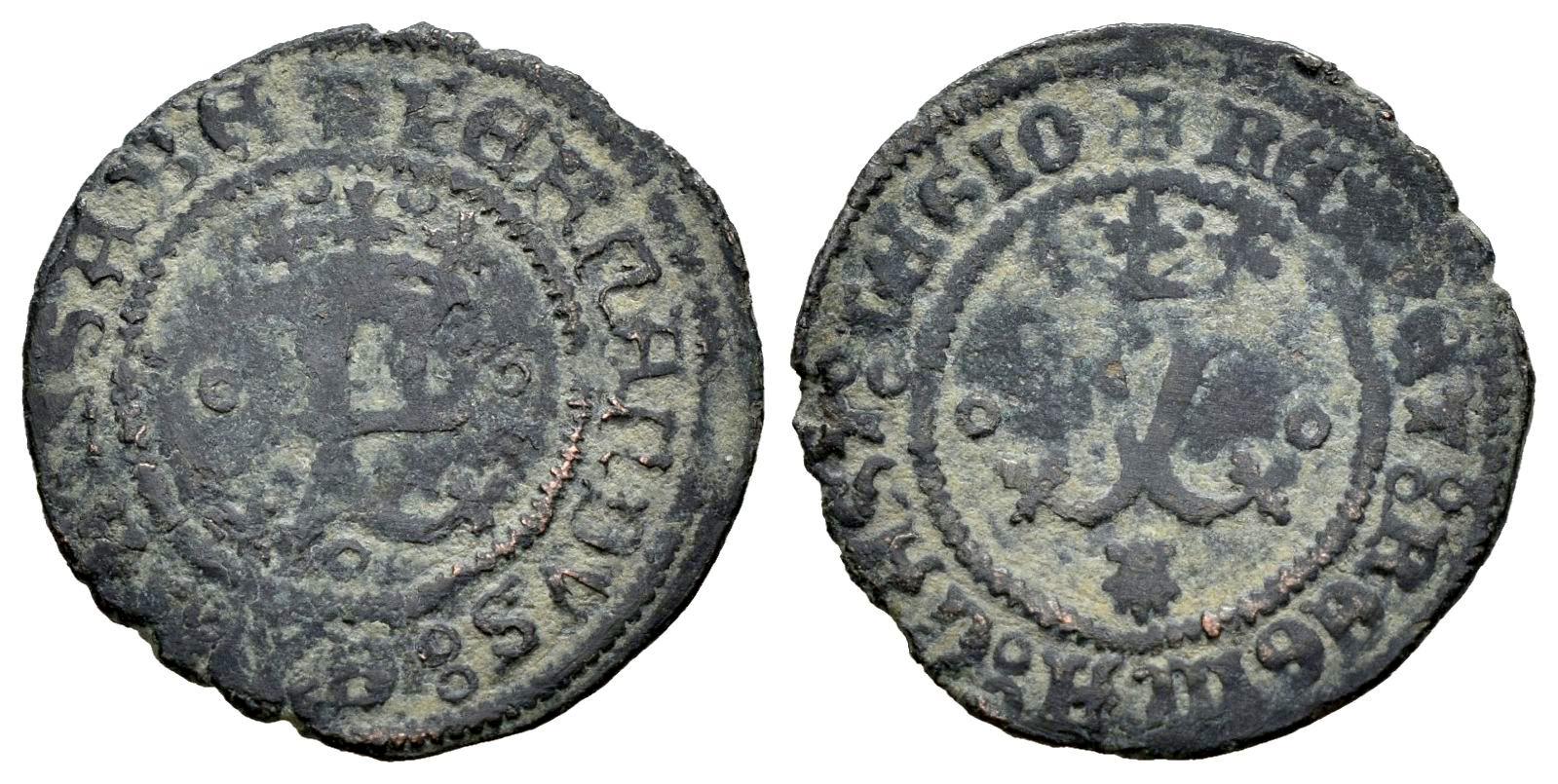 Fernando e Isabel (1474-1504). Blanca. Coruña. (Cal-14). Ve. 1,25 g. MBC-. Est...25,00.