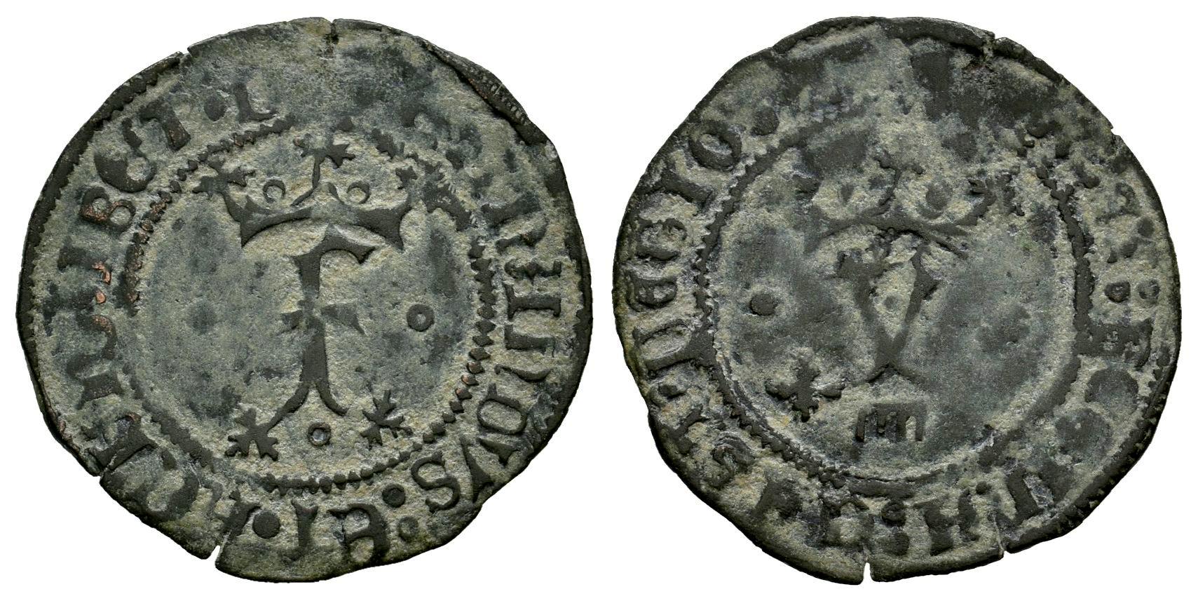 Fernando e Isabel (1474-1504). Blanc. Segovia. (Cal-42). (Bautista-No cita). Anv.: (+ F)ERNANDVS : ET · hELISABET · D. F coronada acotada por pequeños roeles, debajo roel. Rev.: ... ET : REGINA : CAST : LEGIO : ... Y coronada acotada por puntos, debajo acueducto. Ae. 0,95 g. MBC+/MBC. Est...45,00.