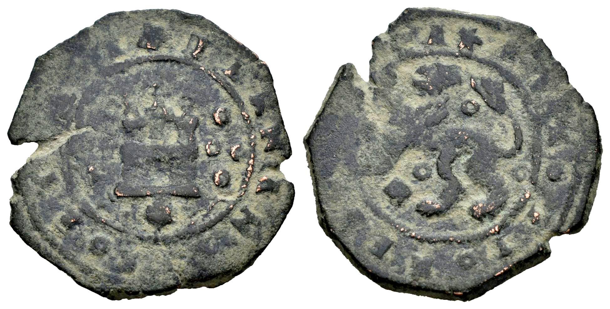 Fernando e Isabel (1474-1504). 2 maravedís. Segovia. (P). (Cal-99). (Bautista-1528). Ve. 4,14 g. Cuatro puntos a derecha del castillo. Grieta. Escasa. MBC. Est...35,00.