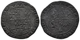 Fernando e Isabel (1474-1504). 1 real. Burgos. (Cal-308). Ag. 3,17 g. Hoja de perejil al final de la leyenda de reverso. BC+. Est...60,00.