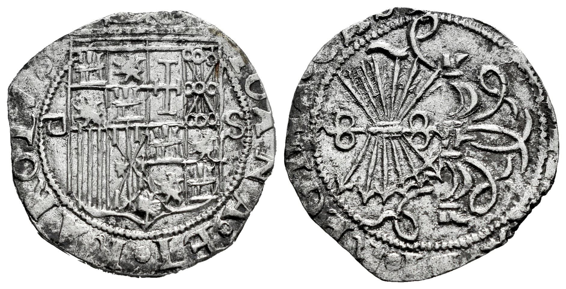 Juana y Carlos (1504-1555). 1 real. Sevilla. (Cal-80). Ag. 3,28 g. Cospel pequeño. Oxidaciones limpiadas. MBC/MBC-. Est...50,00.