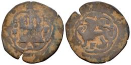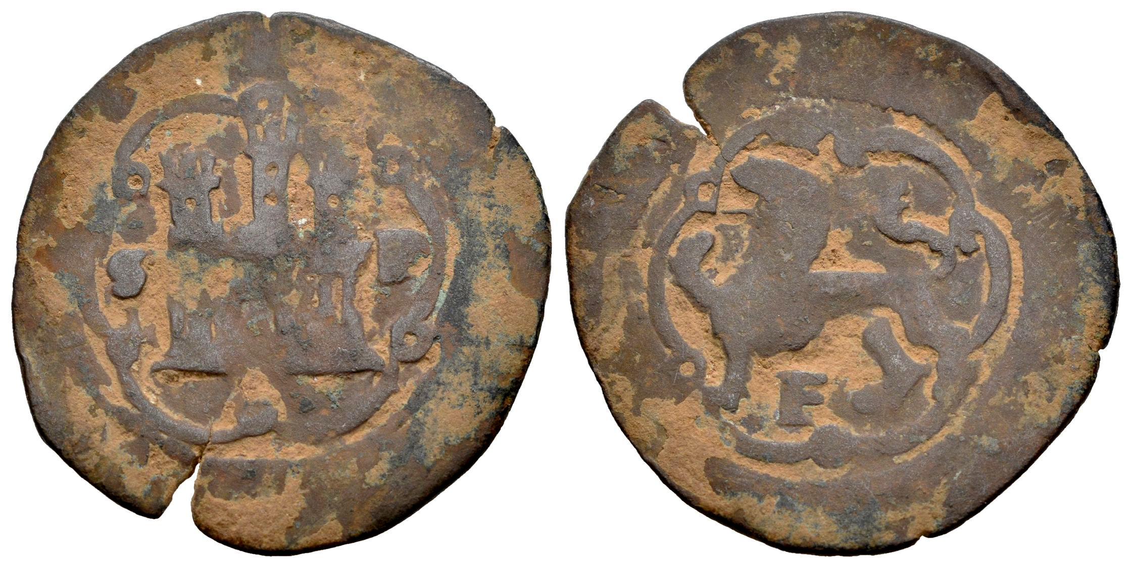 Carlos I (1516-1556). 4 maravedís. ND (ca.1542). Santo Domingo. (Cal-48). Ae. 4,11 g. Castillo entre S-P y F bajo el león. BC-. Est...50,00.