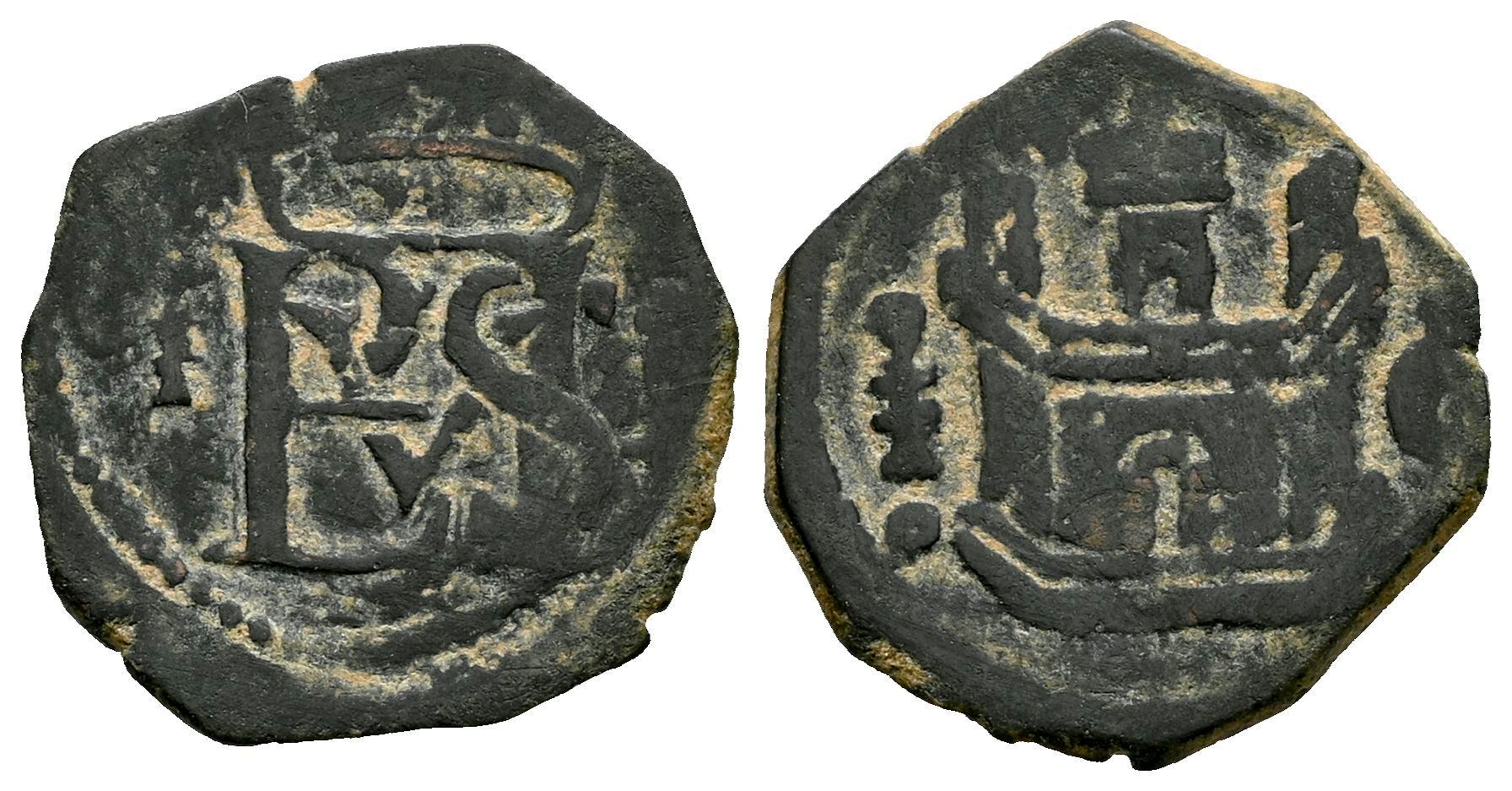 Felipe II (1556-1598). Blanca. ND (1566-1572). Cuenca. (Cal-35). (Jarabo-Sanahuja-A123). Anv.: Monograma entre Armiño y Cuenco. Rev.: Castillo entre Armiño y C, ambos entre puntos. Ae. 1,16 g. MBC+. Est...20,00.