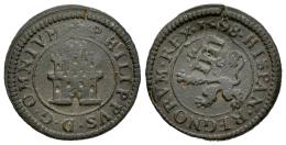 Felipe II (1556-1598). 2 maravedís. 1598. Segovia. (Cal-87). (Jarabo-Sanahuja-E22). Ae. 3,33 g. Sin indicación de ceca ni valor. Resello de 4 maravedís de Cuenca. MBC+. Est...40,00.