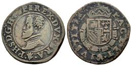 Felipe II (1556-1598). Liard. ND (1577-1581). Amberes. (Vti-538). (Vanhoudt-381.AN). Ae. 6,83 g. Escasa. MBC/MBC-. Est...60,00.