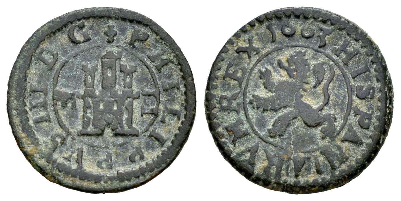 Felipe III (1598-1621). 2 maravedís. 1603. Segovia. (Cal-185). (Jarabo-Sanahuja-D261). Ae. 1,39 g. Acueducto horizontal. MBC. Est...25,00.