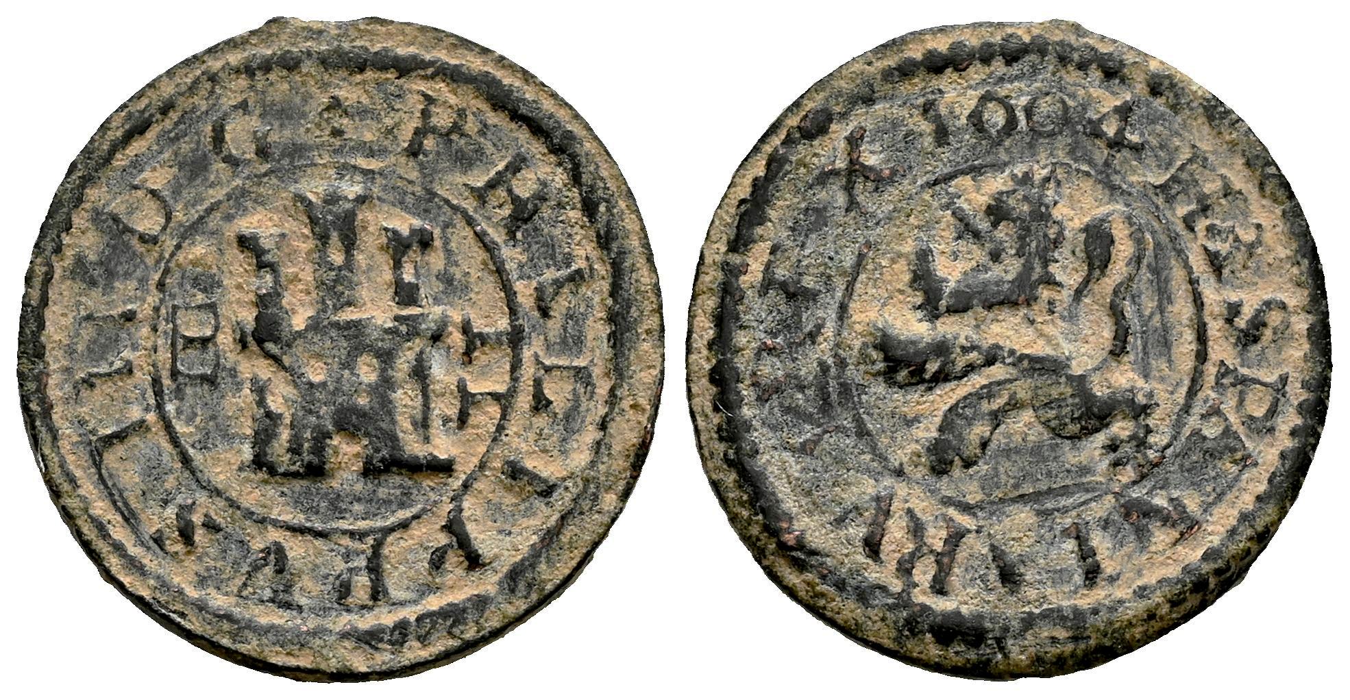 Felipe III (1598-1621). 2 maravedís. 1604. Segovia. (Cal-189). (Jarabo-Sanahuja-D264). Ae. 1,86 g. Acueducto vertical. MBC+. Est...30,00.