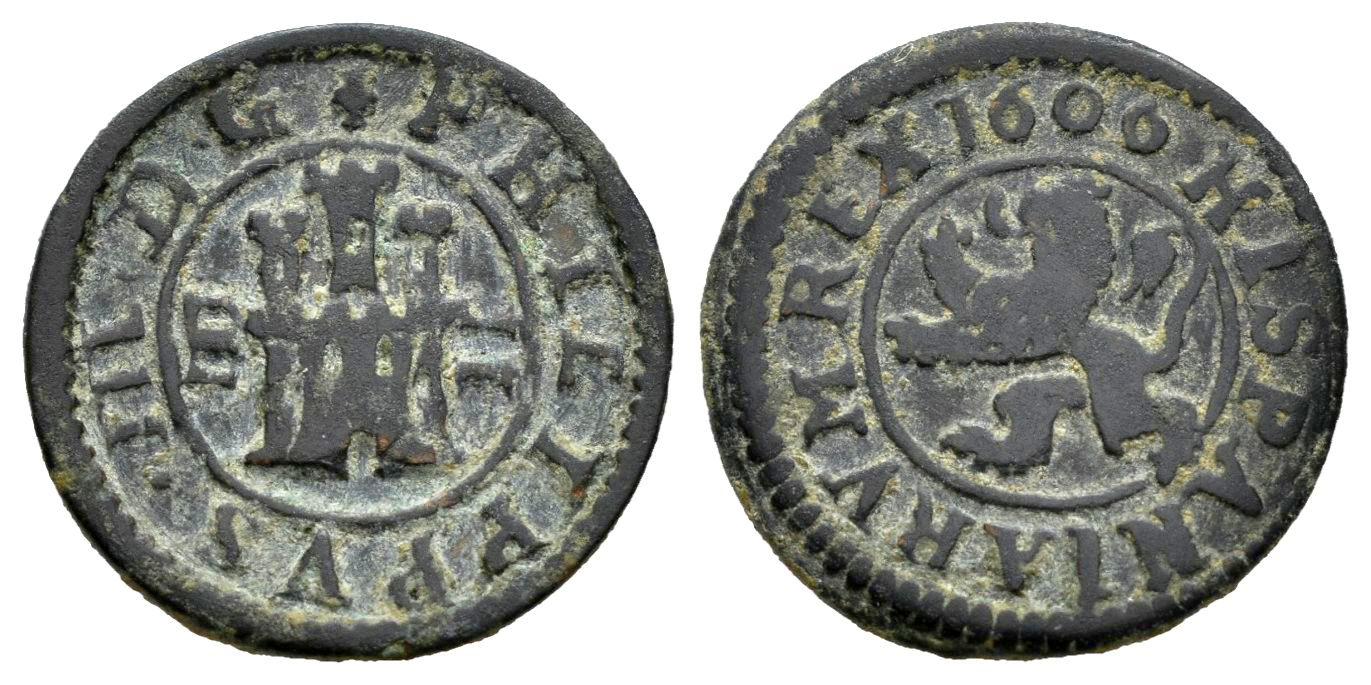 Felipe III (1598-1621). 2 maravedís. 1606. Segovia. (Cal-191). (Jarabo-Sanahuja-D266). Ae. 1,36 g. Acueducto vertical. MBC. Est...25,00.