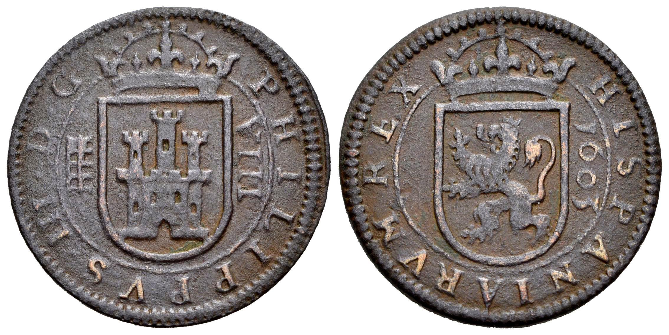Felipe III (1598-1621). 8 maravedís. 1603. Segovia. (Cal-324). (Jarabo-Sanahuja-D215). Ae. 5,81 g. Acueducto de 4 arcos en 2 pisos. MBC. Est...30,00.