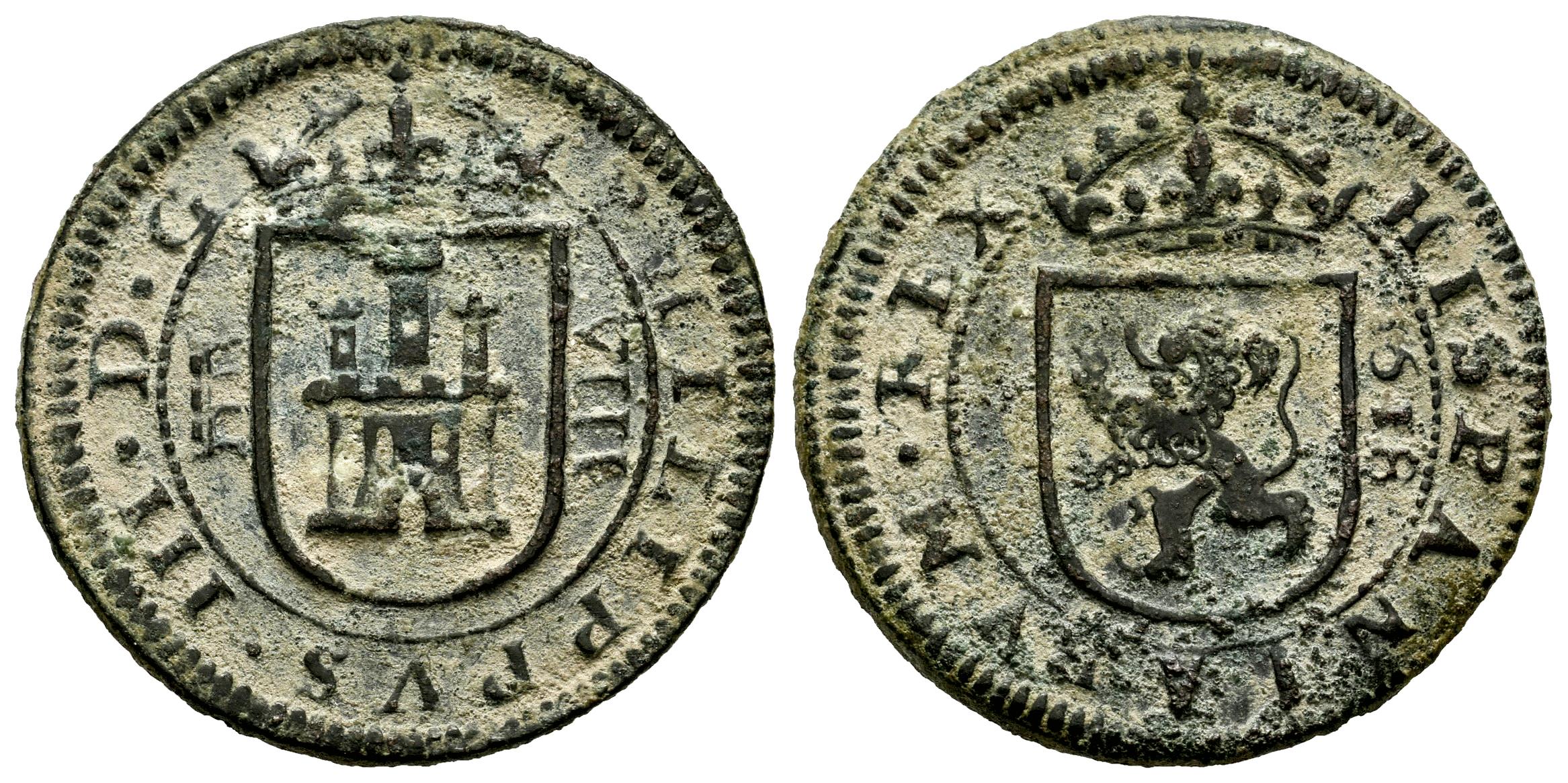 Felipe III (1598-1621). 8 maravedís. 1618. Segovia. (Cal-338). (Jarabo-Sanahuja-D228). Ae. 6,42 g. Leves oxidaciones. MBC+. Est...40,00.
